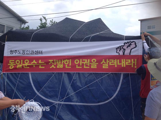 청주노동인권센터(대표 김인국신부, 이하 인권센터)가 기자회견을 통해 동일운수 대표이사의 구속을 촉구하는 5000인 서명운동을 시작하고 18일부터 천막농성에 돌입했다고 밝혔다.