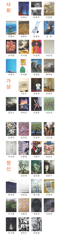 강요배, 권명희, 권준호, 김만수, 김보중, 김준기, 김태순, 류연복, 마동욱, 민병길, 박태규, 박흥순, 복기형, 서완호, 설종보, 손순옥, 손영익, 송대성, 송일상, 송창, 신학철, 유영복, 이기홍, 이김천, 이사범, 이상애, 이은정, 이인철, 이자연, 이종구, 이종국, 2창수, 이흥덕, 이홍원, 임남진, 정용성, 조정태, 주재환, 진시영, 진창윤, 최옥수, 허달용,황재형 등 44명의 작가가 참여한다.