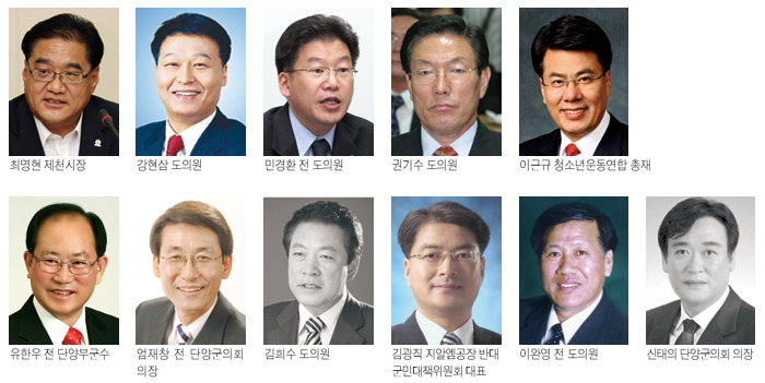 한편 정당공천제의 폐해를 주장하며 탈당했거나 무소속으로 남아 있는 단양군의회 신태의 의장(56)과 김동진 전반기 부의장(61)도 출마를 적극 검토 중이어서 단양군수 선거는 여야 공천 후보와 무소속 등 다자대결로 치러질 가능성이 높다.
