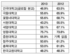 교육부가 발표한 자료에 따르면 충북에서는 2013년 서원대와 세명대, 청주대, 한국교통대가 정부의 대학기관평가인증을 받았다. 전문대로는 지난달 충청대와 충북보건과학대, 강동대학이 통과했다.