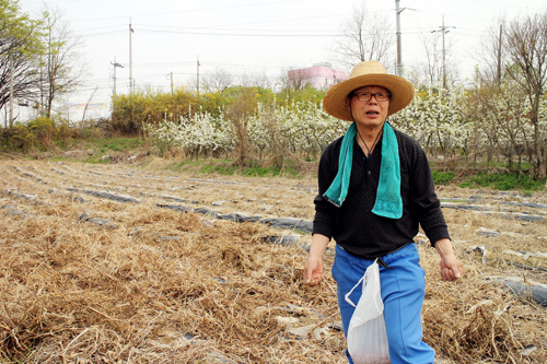 왕암마을 일부분은 4차선도로와 인접해 있다. 그러다보니 앞으로의 개발가능성을 보고 땅을 산 이도 있다. 이른바 외지인이지만 이들도 이곳에서 농사짓고 10여년을 보냈다. 백기춘(66)씨는 갈지 못한 밭을 호미로 파고 강낭콩을 심고 있었다. 그는 1998년 도로에 인접한 땅 350평을 샀다. 이곳에 집을 짓고, 텃밭을 가꾸고 사는 것이 노후대책이었다. 하이닉스에서 30여년 간 일했던 그는 하이닉스 정문 앞을 떠나지 못했다.