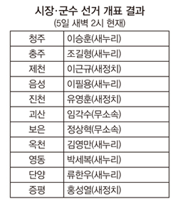 새누리 기초단체장 6곳, 새정치 도지사와 기초단체장 3곳, 무소속 2곳 차지