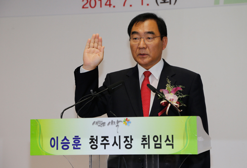 이승훈 초대 통합시장은 취임사에서 “통합 청주시민들은 헌정사상 최초의 주민자율통합을 이뤘다. 그러나 통합으로 당장 무엇이 달라지지는 않는다. 안타깝게도 청주를 둘러싼 환경은 우호적이지 않다. 수도권 규제완화 정책으로 대기업은 지방을 떠나고, 세종시의 과실은 대전으로 가고 있다”고 전제했다. 그러면서 “위기는 곧 기회다. 나의 꿈은 경제수도 청주를 만들어 시민 모두가 잘사는 행복한 도시를 건설하는 것이다. 그렇지만 혼자 힘으로는 이룰 수 없다. 함께 같은 꿈을 꾸며 그 꿈을 이루기 위해 최선을 다하자”고 강조했다. 이 시장의 취임식은 박근혜 대통령이 참석한 통합시 출범식 때문에 시청 대회의실에서 조촐하게 열렸다.