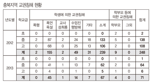 취재를 통해 만난 교사들은 “학교에서는 별다른 조치를 기대할 게 없다. 교육청 차원에서 대응 매뉴얼이 필요하다. 외국에서는 이러한 문제가 생기면 3개월간 교사와 학부모가 특별교육을 이수하도록 돼 있다더라. 충북은 이러한 현실에 대해 너무 안일하게 대응해왔다”라고 입을 모았다.
