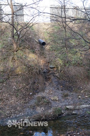 또 C社 부지와 인근 도랑사이에 의문의 배수관로도 발견됐다. 직경 40cm 정도의 이 관로는 C社와 도랑사이에 2개가 설치돼 있으며 이중 하나는 13일부터 16일까지 계속해서 물을 배출하고 있었다.