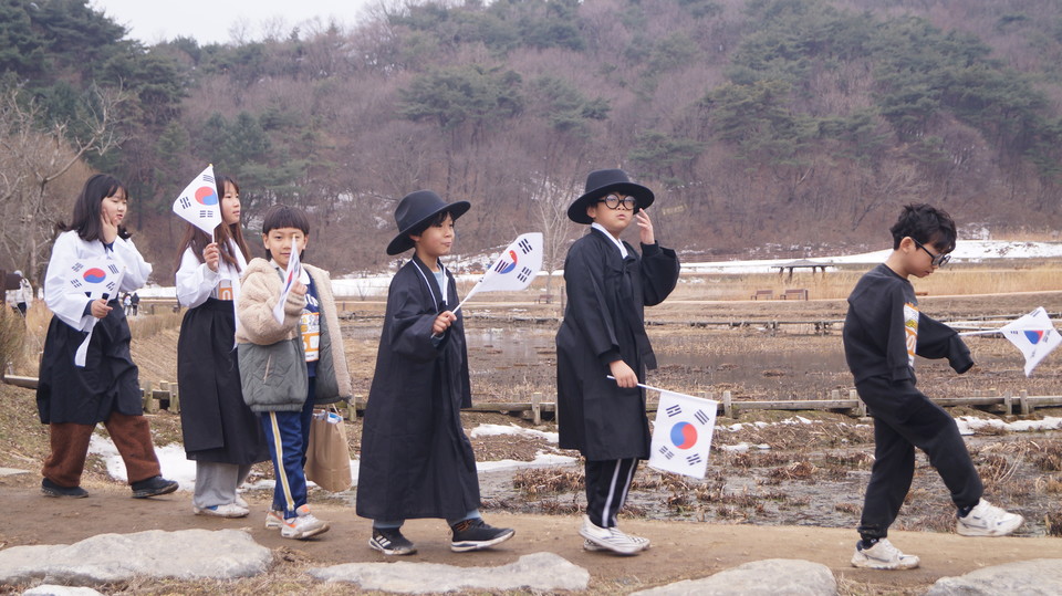 또한 일본 순사 복장을 갖춰 입은 활동가가 “얼음 땡!”하고 외치면 아이들이 “대한독립만세”를 외치는 등 감초역할을 하며 행사의 즐거움을 더했다.